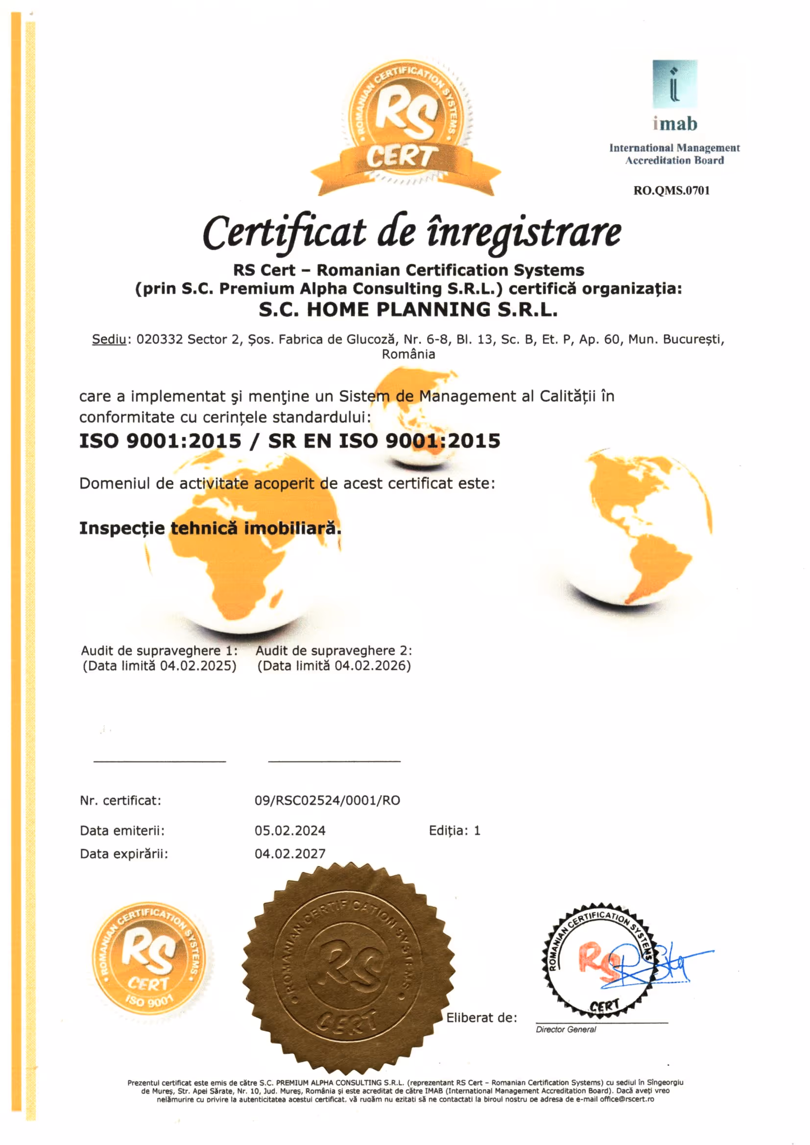 SO 9001:2015 Quality Management Certification Technical real estate inspection